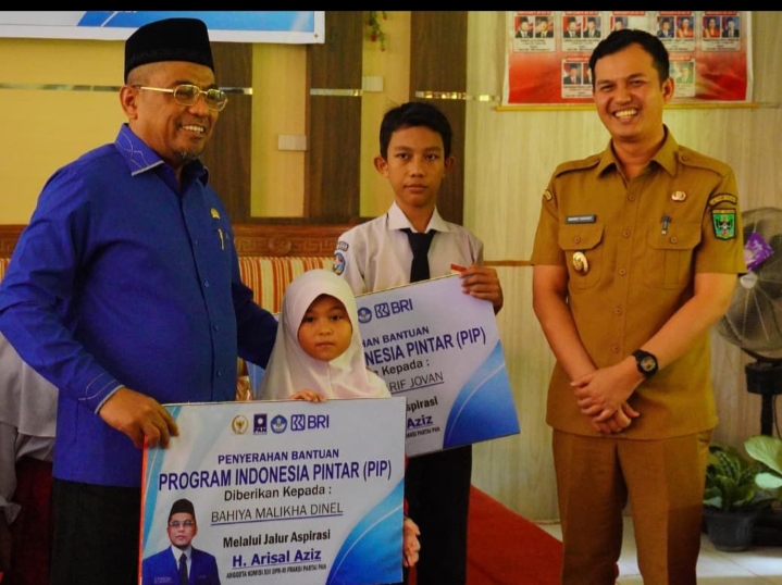 Arisal Aziz dan Wabup Rahmat Hidayat Serahkan Beasiswa PIP Jalur Aspirasi kepada Pelajar SD dan SMP Kabupaten Padang Pariaman