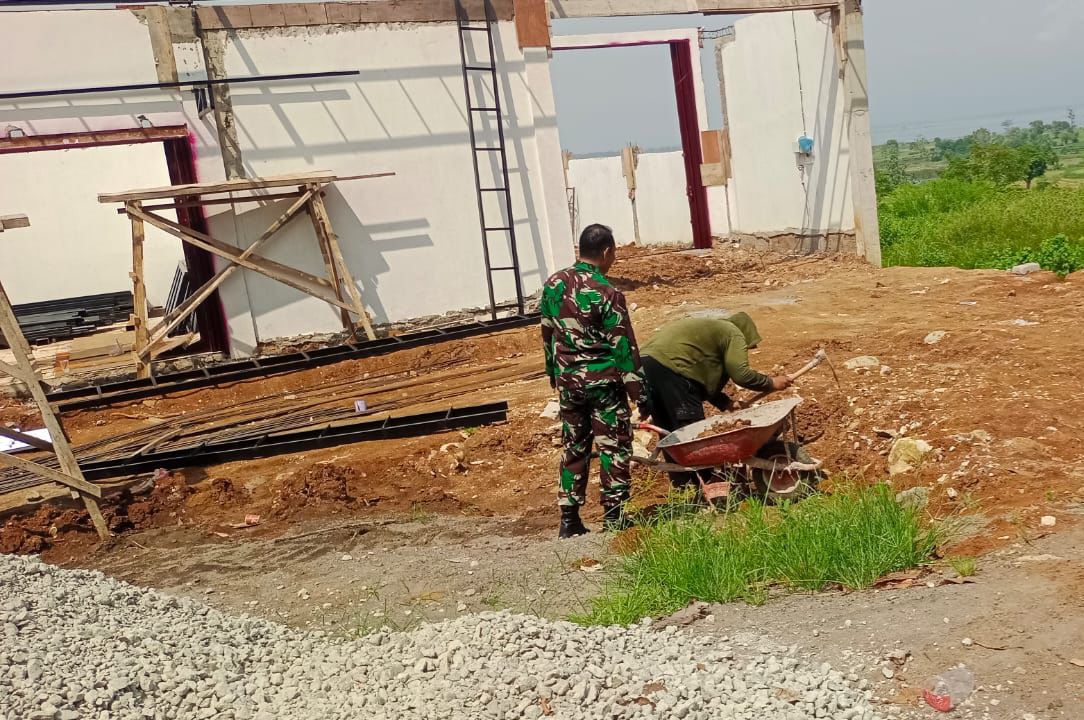 Pada kegiatan tersebut, proses pembangunan memasuki tahap pemasangan rangka atap. Sejumlah pekerja tampak bahu-membahu menyelesaikan pekerjaan dengan penuh semangat. Sementara Serka Ruswono memastikan seluruh proses berjalan aman, tertib, dan sesuai rencana.