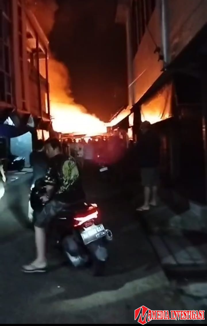 TEMBILAHAN,- Mediainvestigasi.net–Suasana langit dini hari di pusat pasar tradisional Kota Tembilahan mendadak merah mencekam. Sekitar pukul 02.30 WIB, Jum’at, 10 Oktober 2025, warga dikejutkan oleh kobaran api besar yang melahap pusat Pasar Tradisional Kota Tembilahan.