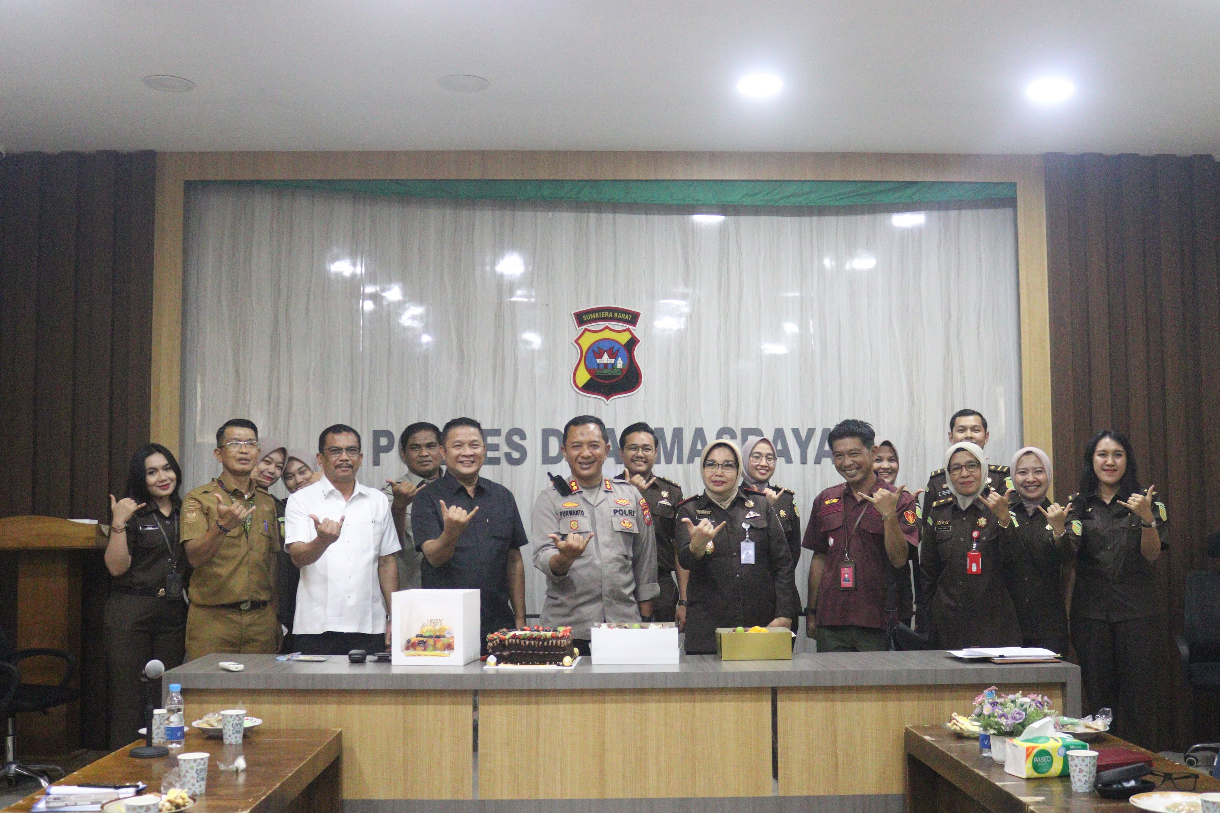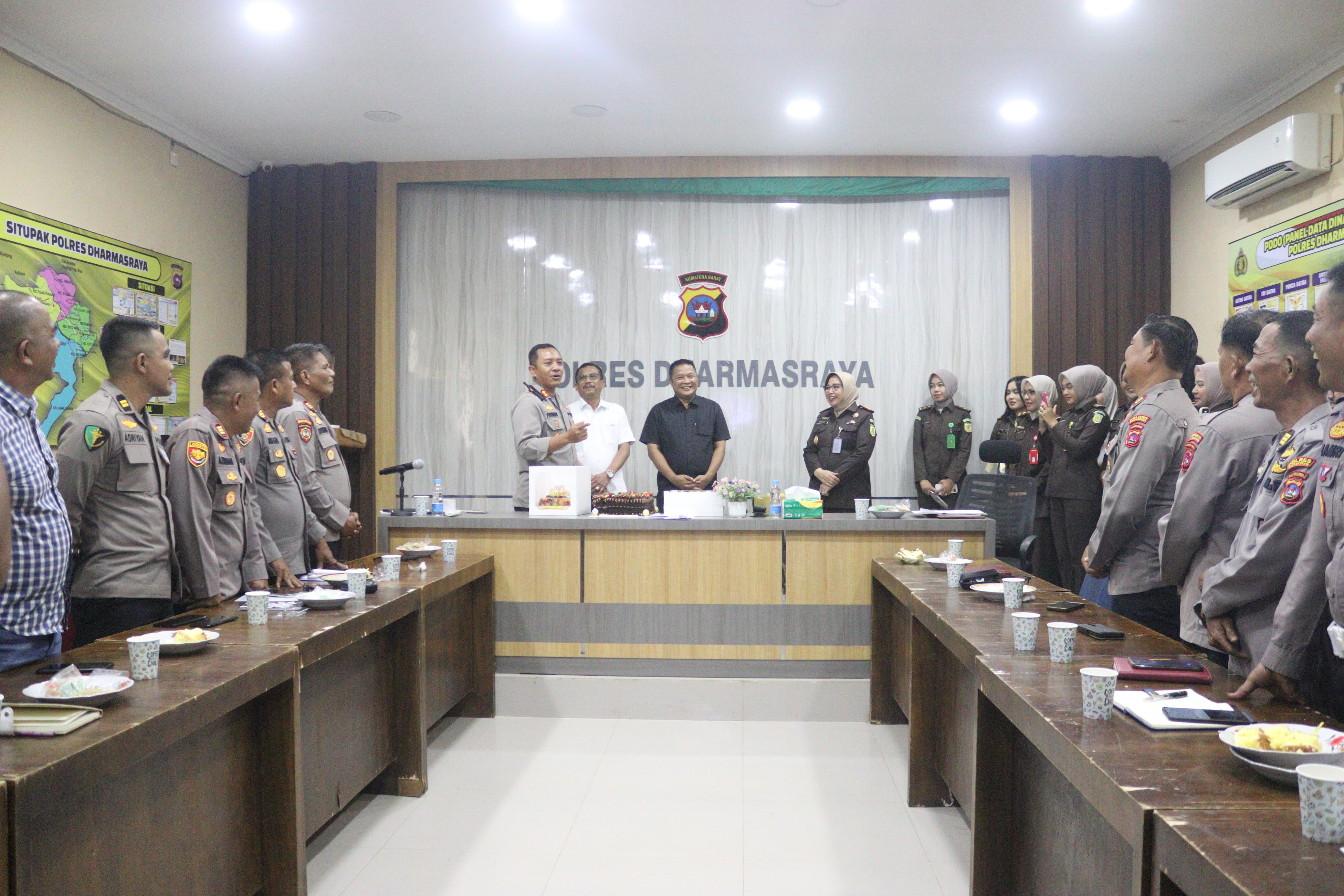 Momen sederhana ini ternyata berhasil menghadirkan suasana berbeda. Tidak hanya unsur pimpinan DPRD, terlihat pula Kajari Dharmasraya bersama jajaran stafnya, serta seluruh jajaran utama Polres yang ikut larut dalam kebersamaan.