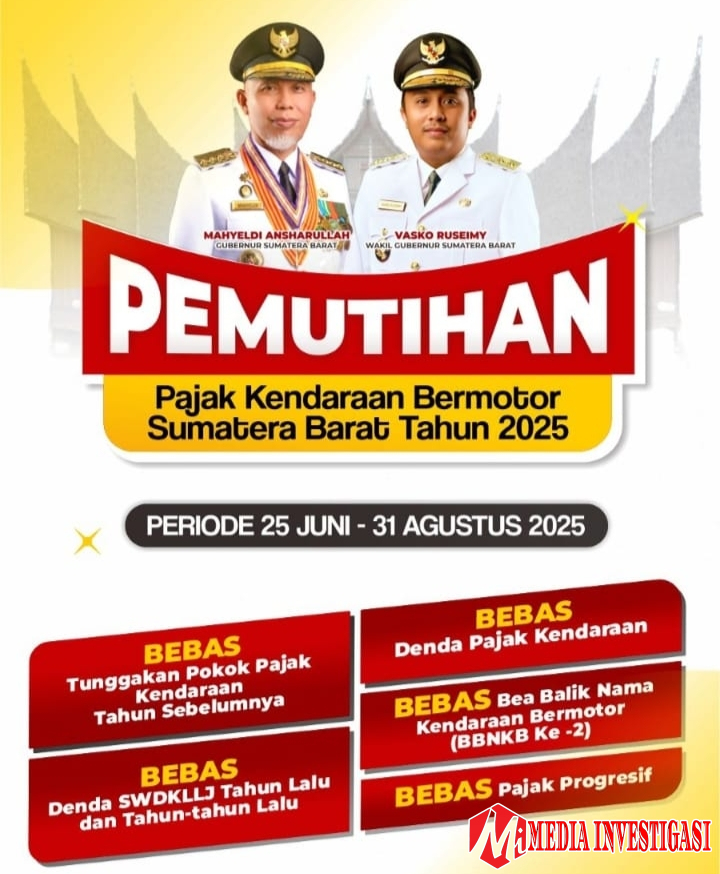 Dharmasraya, Mediainvestigasi.net – Program pemutihan pajak kendaraan bermotor yang digagas Pemerintah Provinsi Sumatera Barat disambut antusias oleh hampir seluruh kepala daerah di kabupaten/kota. Mereka berlomba-lomba mempromosikan kebijakan ini sebagai bagian dari strategi meningkatkan Pendapatan Asli Daerah (PAD), terutama dari sektor pajak kendaraan bermotor yang dikenal sebagai penyumbang terbesar kas daerah.