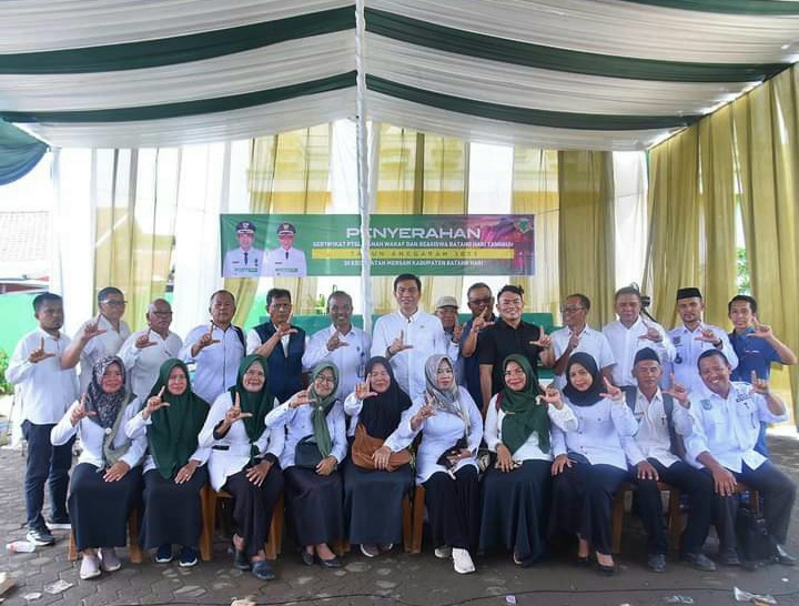 Mediainvestigasi.Net- Batanghari/Jambi Bupati Batang Hari Muhammad Fadhil Arief SE menyerahkan secara Simbolis Sertifikat PTSL,Tanah Wakaf,Beasiswa Tangguh dan Reword Purna Bakti Guru bertempatan di Kecamatan Mersam, Kabupaten Batang Hari, Rabu (06/03/2024).