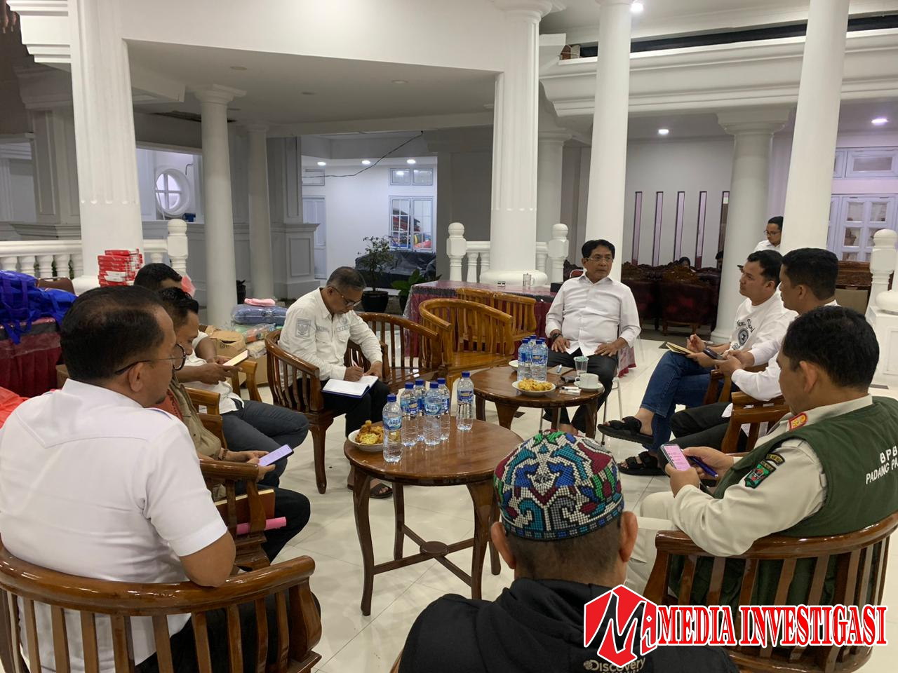 Mediainvestigasi.net.- Pemerintah Kabupaten Padang Pariaman terus mempercepat langkah pemulihan pascabencana melalui rapat evaluasi rutin yang digelar setiap dua hari sekali. Pada Rabu malam (10/12), Bupati Padang Pariaman John Kenedy Azis kembali memimpin rapat evaluasi di Pandopo Bupati untuk memastikan tiga agenda utama berjalan optimal: pendistribusian logistik, tindak lanjut kunjungan Wakil Menteri Pekerjaan Umum dan Komisi V DPR RI, serta persiapan Hunian Sementara (Huntara) bagi warga pengungsi.