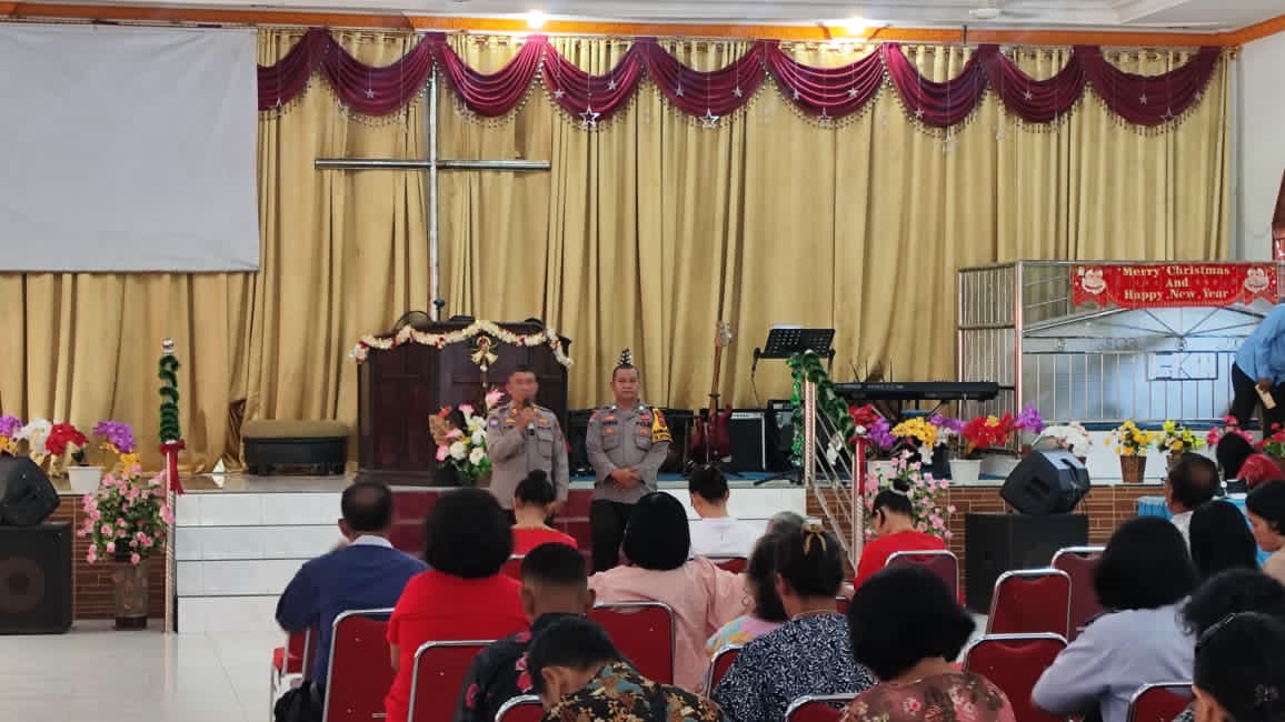 Dalam kesempatan tersebut, Kasat Binmas Polres Sibolga menyampaikan berbagai himbauan dan pesan-pesan Kamtibmas kepada jemaat gereja. Disampaikan bahwa Polres Sibolga secara rutin melaksanakan beberapa program kegiatan, antara lain *Program Minggu Kasih*, *Pengamanan Ibadah Kebaktian Minggu*, serta *Patroli Tiga Pilar* yang dilaksanakan setiap malam hari guna menjaga stabilitas Kamtibmas di Kota Sibolga.