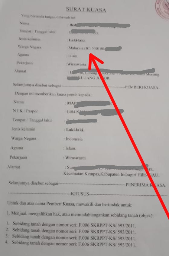 Diduga Kuat Surat Kuasa HB Tidak Diikutsertakan dalam Penerbitan Surat Tanah Baru