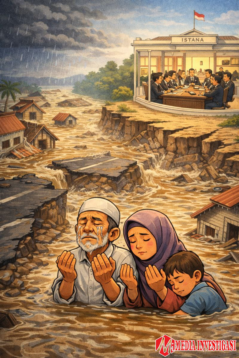 Mediainvestigasi.net–Di tanah yang basah oleh banjir dan lumpur, doa menjadi bahasa paling jujur dari rakyat yang terluka. Dari sudut-sudut pengungsian di Aceh dan Sumatra, terlantun munajat orang-orang yang merasa ditinggalkan oleh kekuasaan, berupa permohonan agar diselamatkan dari kezaliman dan dituntun ke jalan yang lurus. Doa itu tidak lahir dari kebencian, melainkan dari kelelahan panjang menghadapi negara yang terasa semakin jauh dari denyut penderitaan warganya.