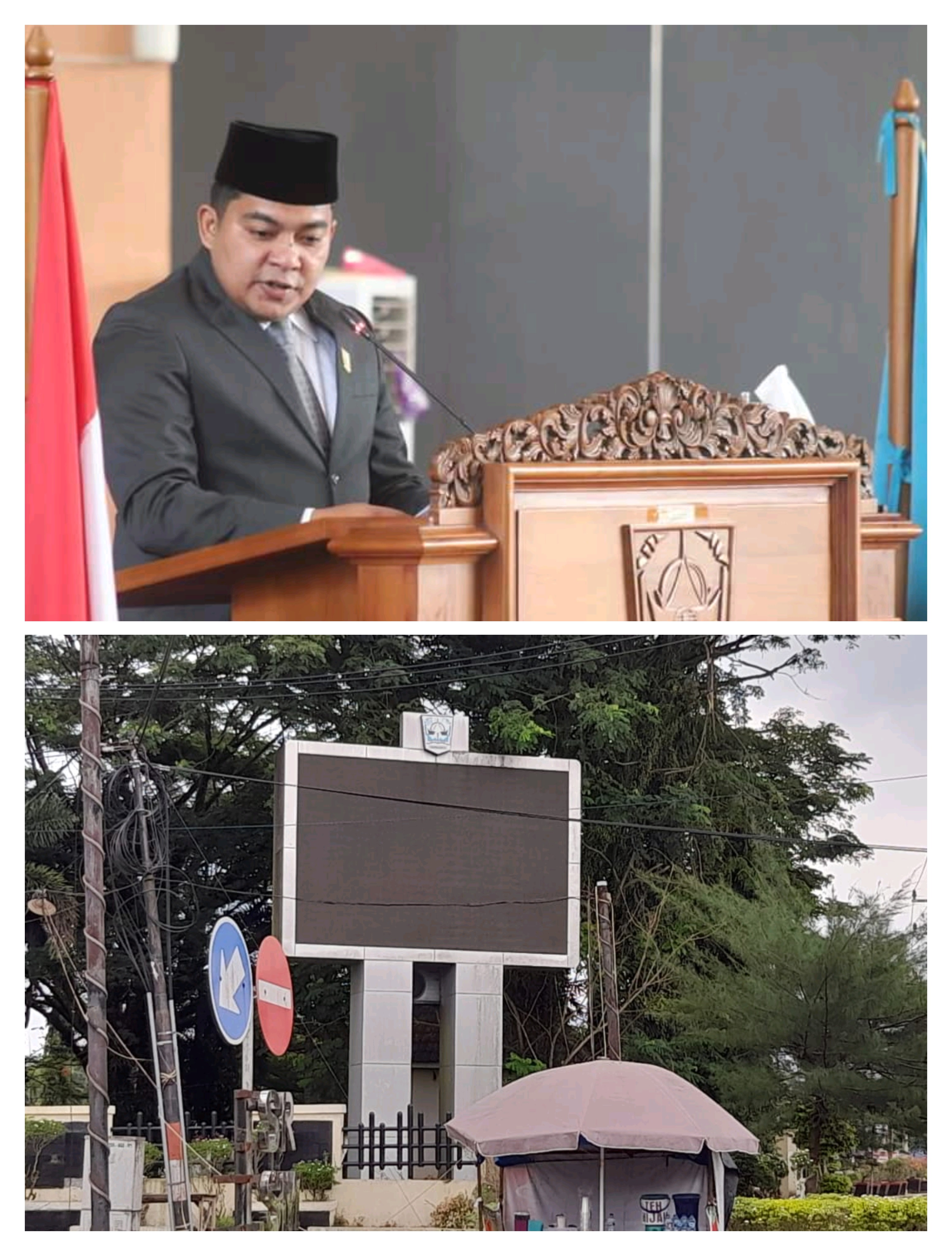 Pimpinan DPRD Ade Sudarman dan Videotron Kantor Bupati Dharmasraya (Dok, Mediainvestigasi.net/Yanti)