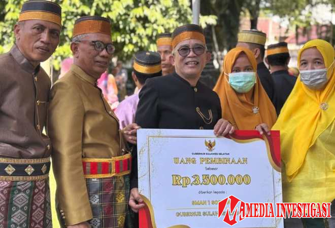 MEDIAINVESTIGASI.NET — Gubernur Sulawesi Selatan, Andi Sudirman Sulaiman, ST, menyerahkan penghargaan kepada SMAN 1 Soppeng pada puncak perayaan Hari Pendidikan Nasional (Hardiknas) 2025 di Halaman Rumah Jabatan Gubernur Provinsi Sulawesi Selatan, Jumat 2 Mei 2025.
