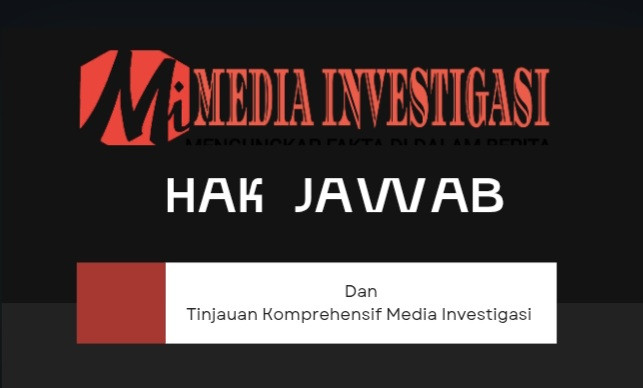 Mediainvestigasi.net telah menayangkan hak jawab sebagaimana diatur dalam Kode Etik Jurnalistik Pasal 11, yang menegaskan: “Wartawan Indonesia melayani hak jawab dan hak koreksi secara proporsional.”