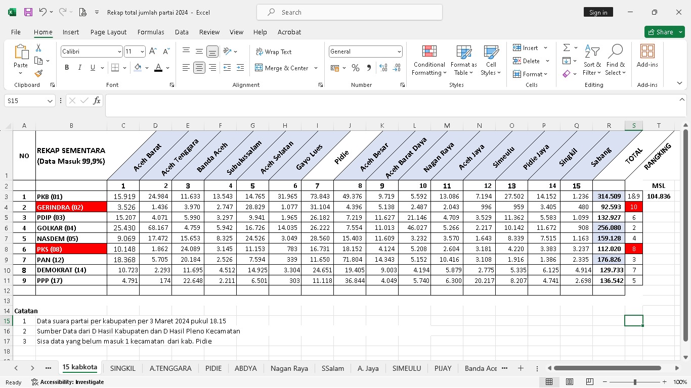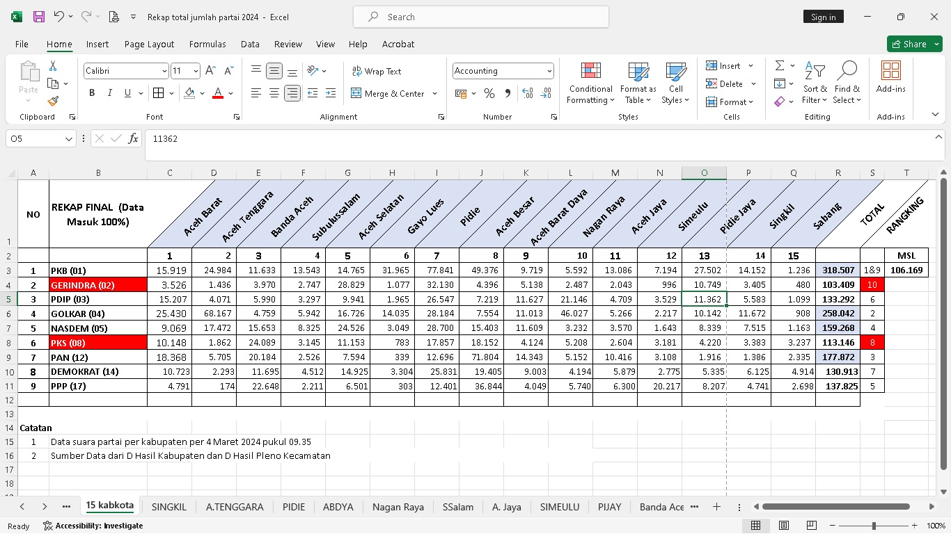 Sebagaimana diketahui, data tersebut diatas bersumber dari data D Hasil pada pleno rekapitulasi tingkat kecamatan se Dapil Aceh 1 dengan total suara terinput mencapai 99%lebih atau minus satu kecamatan di Kabupaten Pidie. Kendatipun terjadi pergeseran jumlah suara setelah data masuk 100 persen namun tak akan mempengaruhi signifikan untuk pergantian posisi suara badan caleg maupun posisi partai yang akan melaju ke DPR RI.