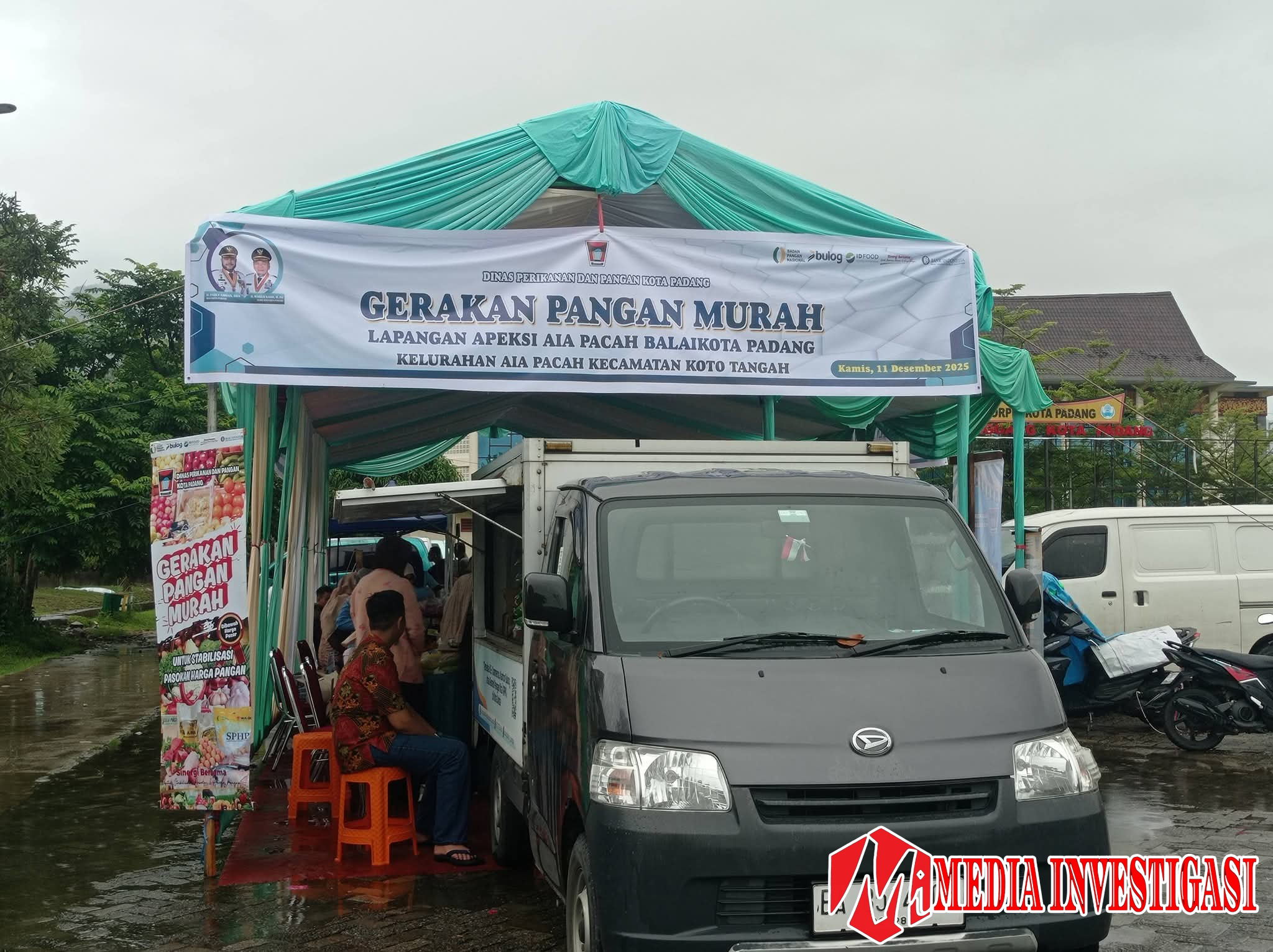 Padang – Mediainvestigasi.net–Untuk memastikan stabilitas harga bahan pangan tetap terjaga pascabencana, Dinas Perikanan dan Pangan Kota Padang menggelar Gerakan Pangan Murah (GPM) di Lapangan Tugu Apeksi Balaikota Padang, Aie Pacah, Kamis (11/12/2025).