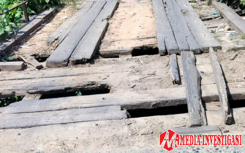 Dharmasraya, Mediainvestigasi.net — Warga Jorong Pulau Anjolai, Nagari Koto Nan Ampek Dibawah, Kecamatan Sembilan Koto, Dharmasraya, Sumatera Barat, tengah dihantui kecemasan. Satu-satunya jembatan penghubung di wilayah mereka dalam kondisi darurat dan nyaris ambruk. Lantai kayu jembatan tampak lapuk, berlubang di beberapa titik, dan dapat membahayakan nyawa pengguna jalan sewaktu-waktu.