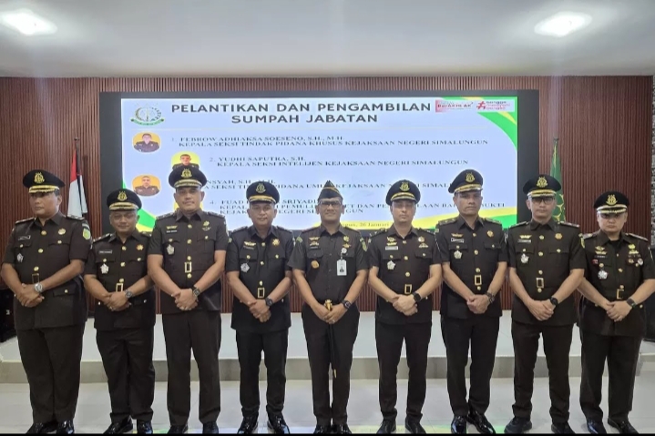 Pelantikan dan Pengambilan Sumpah Jabatan berlangsung di aula Kantor Kejari Simalungun dihadiri seluruh jaksa dan pegawai.
