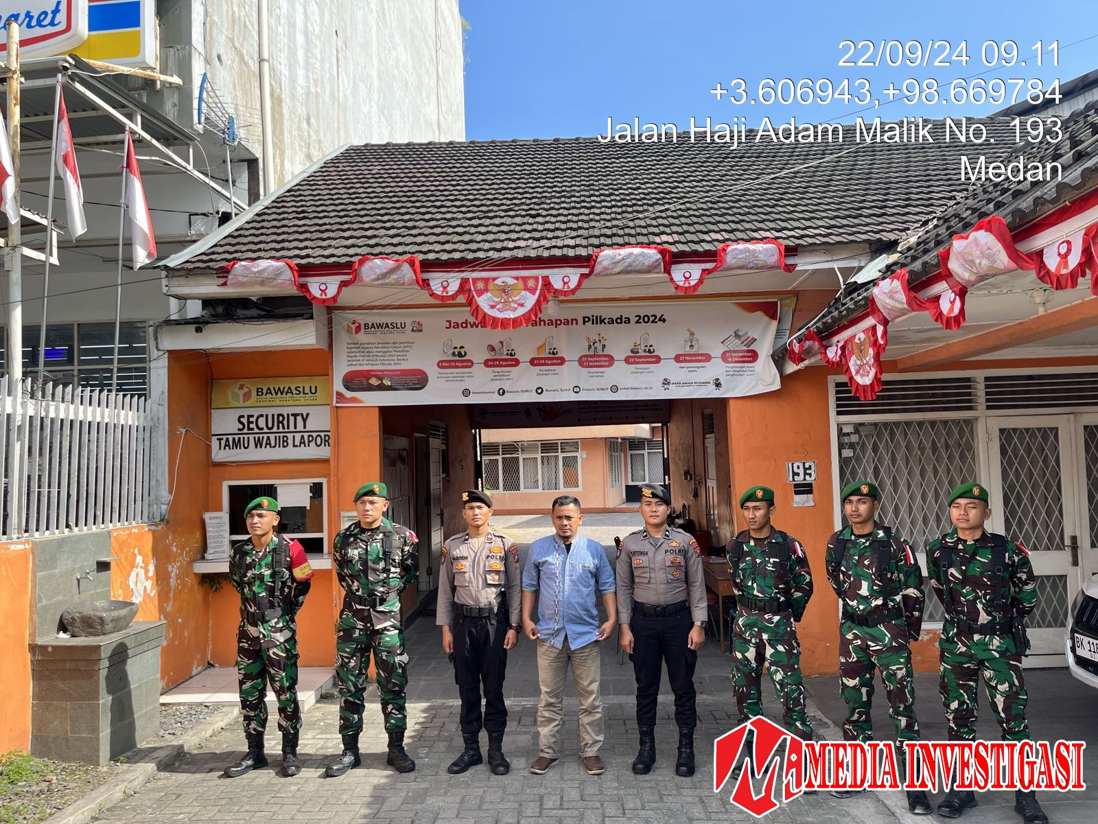 Medan –Mediainvestigasi.net– Guna memastikan keamanan dan ketertiban menjelang tahap pengundian nomor Paslon Cagub dan Cawagub di Pilkada serentak, Satgas Operasi Mantap Praja (OMP) Toba 2024 melakukan pengamanan di kantor KPU dan Bawaslu Provinsi Sumatera Utara, Minggu (22/09/2024).