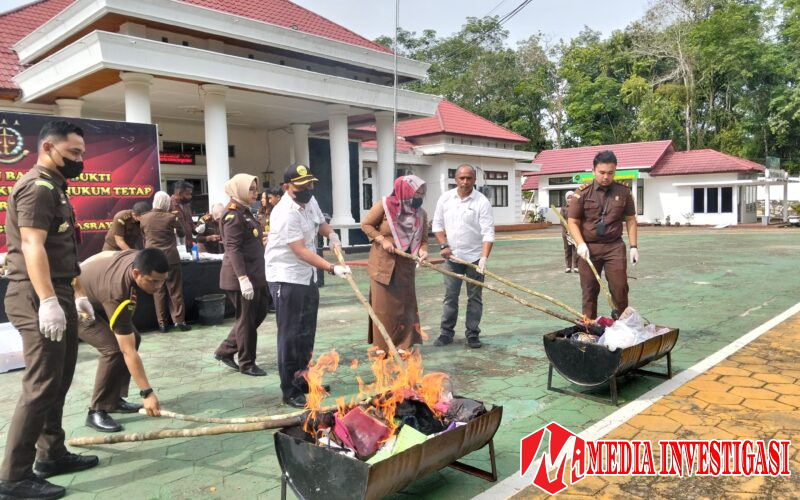 Dharmasraya, Mediainvestigasi.net– Kejaksaan Negeri Dharmasraya kembali menegaskan komitmennya dalam memberantas kejahatan dengan memusnahkan barang bukti dari berbagai kasus hukum yang telah memiliki kekuatan hukum tetap (inkracht). Pemusnahan ini digelar pada Senin, 16 Desember 2024, sebagai langkah nyata mengakhiri tahun dengan penegakan hukum yang tegas.