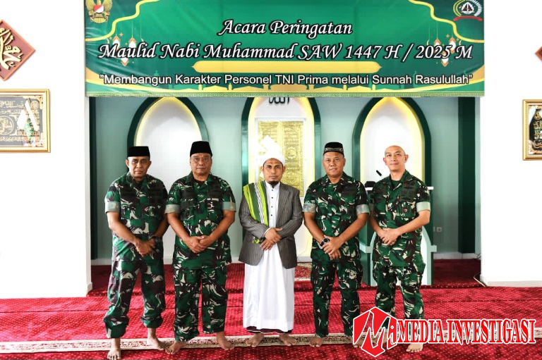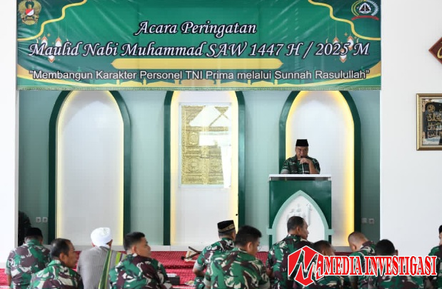 MEDIAINVESTIGASI.NET – Pusat Teritorial Angkatan Darat (Pusterad) memperingati Maulid Nabi Muhammad SAW 1447 H/2025 M dengan tema “Membangun karakter Personel TNI PRIMA melalui sunnah Rasulullah”, Rabu, 17 September 2025, di Masjid Al-Ikhlas Mapusterad, Jakarta Timur. Kegiatan ini diikuti seluruh Prajurit TNI, PNS, serta anggota Persit Kartika Chandra Kirana PCBS Pusterad.