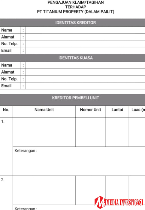 “Saya membayar uang muka sejak 2014, selalu tepat waktu. Ketika Titanium dinyatakan pailit pada Januari 2025, saya berhenti mencicil. Tapi sampai sekarang tidak ada kepastian apa pun,” ujarnya