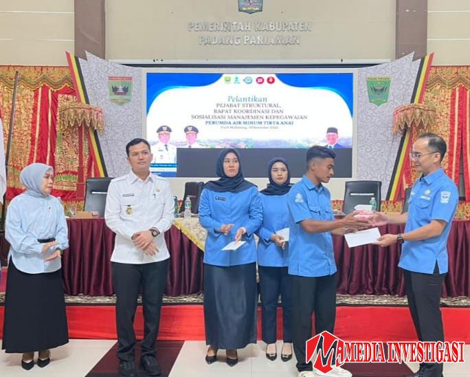 Parik Malintang,—Mediainvestigasi.net.- Wakil Bupati Padang Pariaman, Rahmat Hidayat, secara resmi membuka Pelantikan Pejabat Struktural Perumda Air Minum Tirta Anai (PDAM) yang digelar pada Rabu (10/12) di Aula IKK Parik Malintang. Kegiatan tersebut juga dirangkaikan dengan rapat koordinasi lintas sektor sebagai langkah memperkuat pelayanan dan pengelolaan tata perusahaan daerah minum.Turut hadir dalam kesempatan tersebut Kapolres Padang Pariaman AKBP Ahmad Faisol Amir, Ketua TP-PKK, Ketua GOW, Direktur Perumda Tirta Anai, kepala perangkat daerah, serta para tamu undangan.