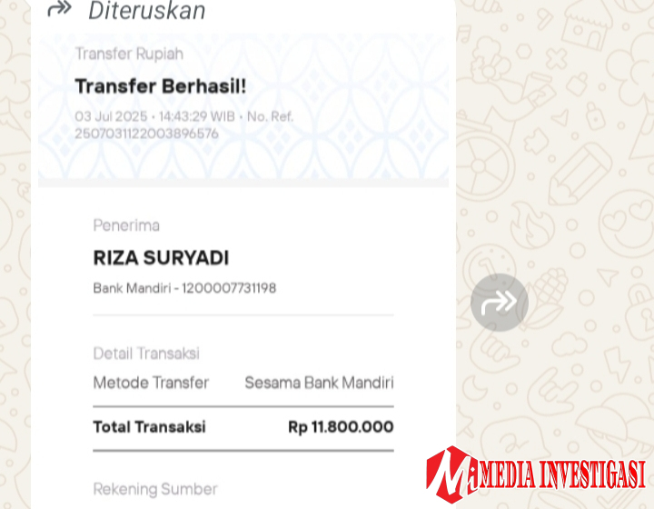 Berdasarkan informasi yang diterima media ini, bukti transfer ke rekening atas nama Riza Suryadi, mengalir dari berbagai pihak.
