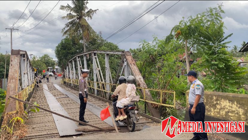 Satlantas Polres Soppeng Pasang Rambu Larangan di Jembatan Rusak.