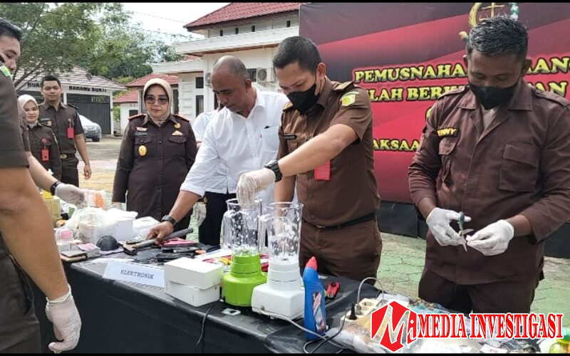 Dharmasraya, Mediainvestigasi.net– Dalam upaya memberantas penyalahgunaan narkotika di wilayah hukumnya, Satresnarkoba Polres Dharmasraya kembali menunjukkan ketegasannya. Sebanyak 150,135 gram sabu, 92,08 gram ganja, 1,82 gram ekstasi, dan alat-alat hisap sabu dimusnahkan dalam sebuah prosesi yang berlangsung pada Senin (16/12/2024) di Kejaksaan Negeri Dharmasraya Pulau Punjung. Barang bukti tersebut berasal dari kasus-kasus narkotika yang telah memiliki kekuatan hukum tetap (inkracht).