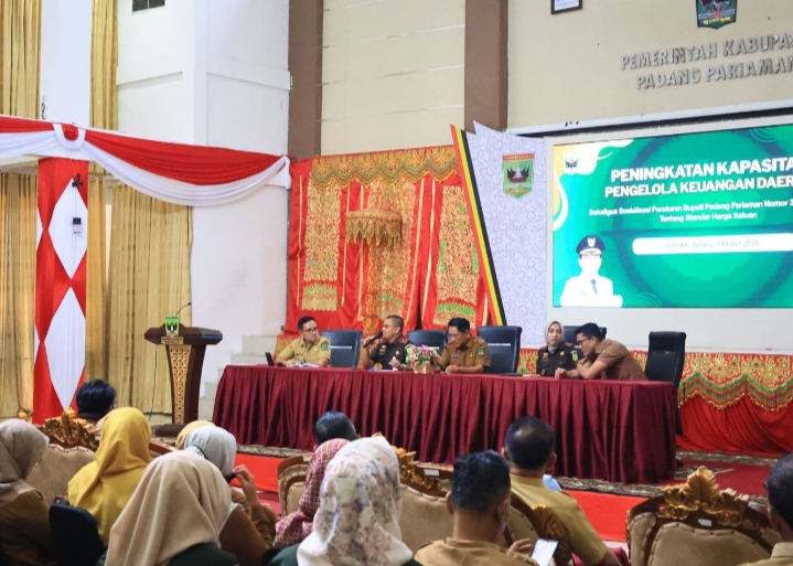 Padang Pariaman — Mediainvestigasi.net.- Pemerintah Kabupaten Padang Pariaman melalui Badan Pengelolaan Keuangan Daerah (BPKD) menggelar kegiatan Peningkatan Kapasitas Pengelola Keuangan Daerah sekaligus Sosialisasi Peraturan Bupati Padang Pariaman Nomor 37 Tahun 2025 tentang Standar Harga Satuan, yang dilaksanakan di Hall IKK, Selasa (3/3).