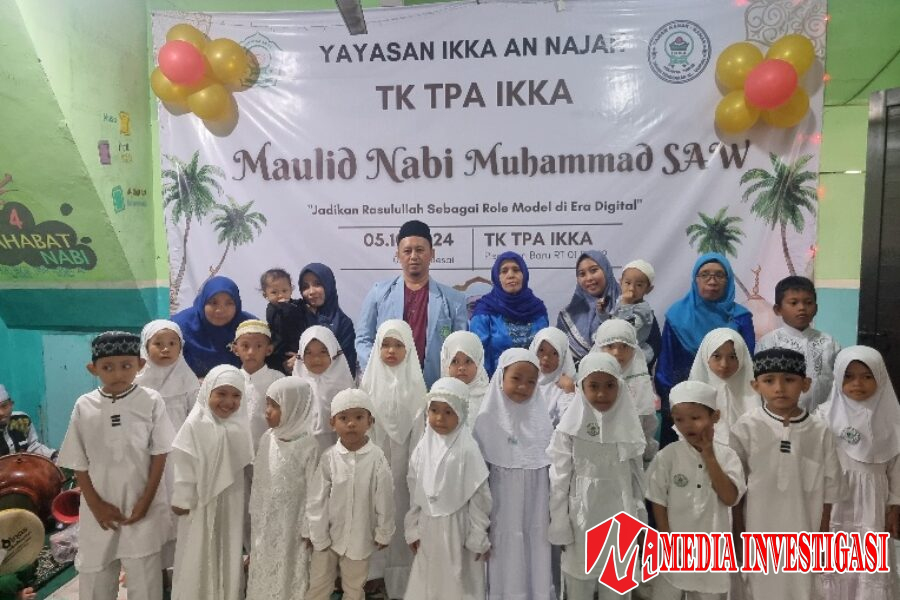 MEDIAINVESTIGASI.NET – TK TP Al-Qur’an yayasan IKKA An-Najah binaan LPPTKA BKPRMI Jakarta Timur melaksanakan kegiatan Maulid Nabi Muhammad SAW di Jalan Pisangan Baru Tengah, Jakarta Timur, Sabtu (5/10/2024).