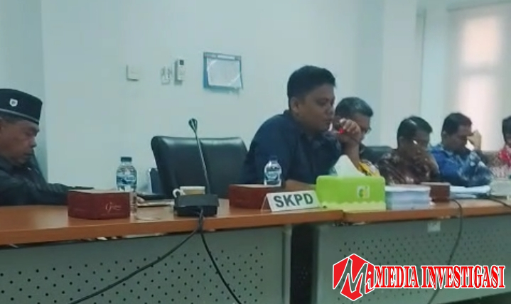 (Amrizal, disebelahnya kiri Plt Kominfo Bobby Perdana Riza, sebelah kanannya Sekretaris Kominfo Hendri, akui kesalahan di rapat asestensi di DPRD)