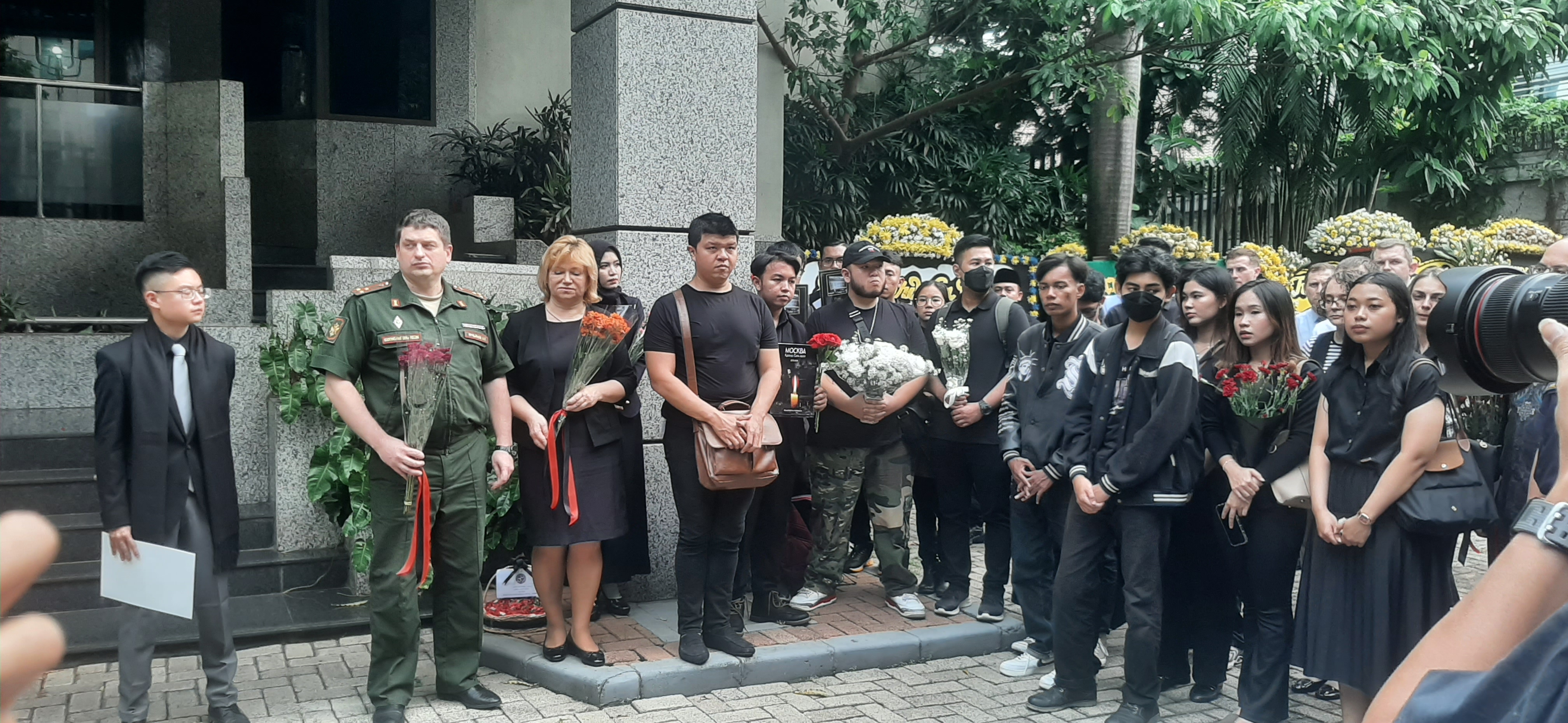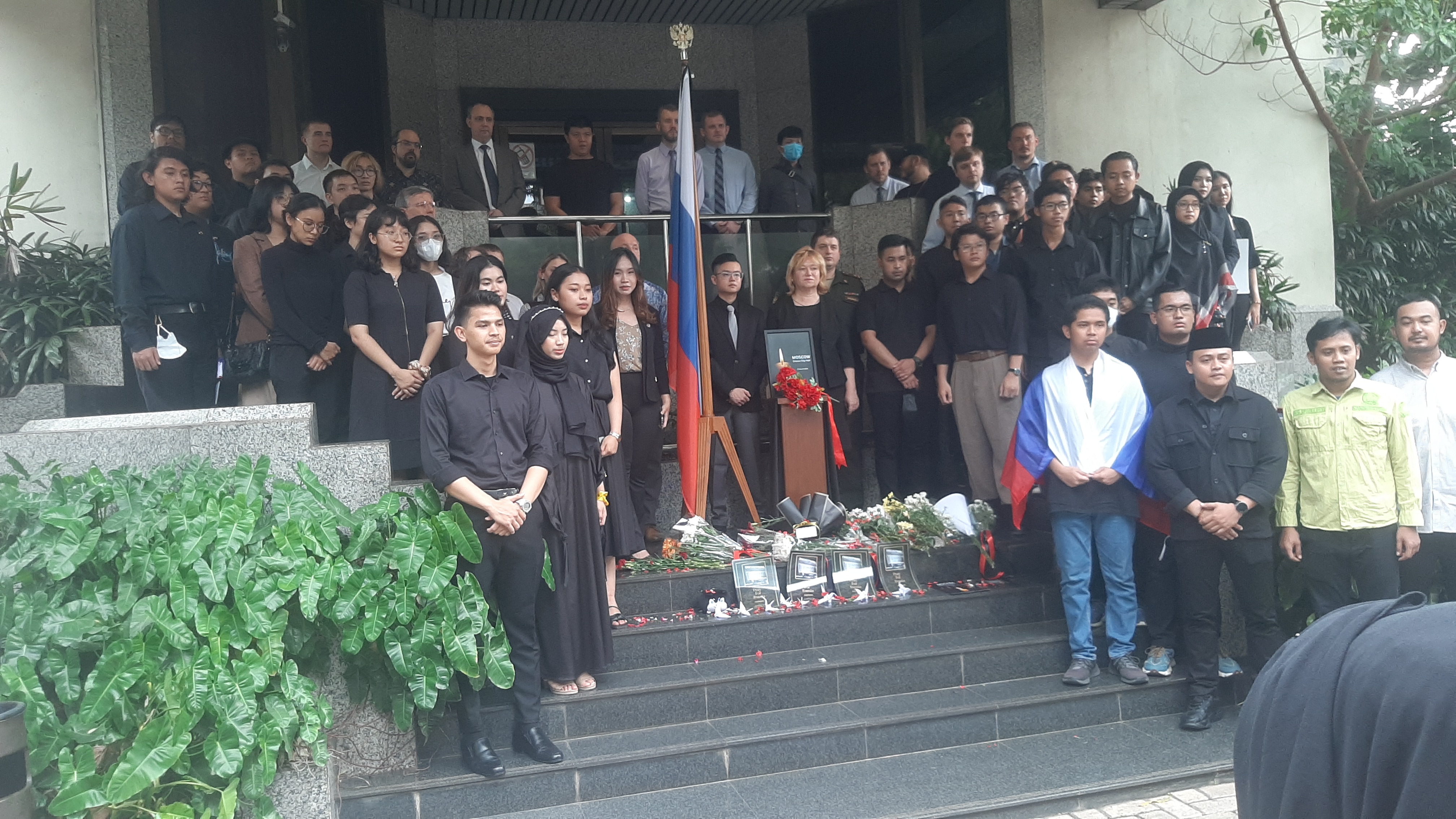 Sejumlah komunitas di Indonesia dan perwakilan Kedutaan Besar Rusia di Jakarta dalam aksi solidaritas untuk korban serangan di Balai Kota Crocus, Jakarta.